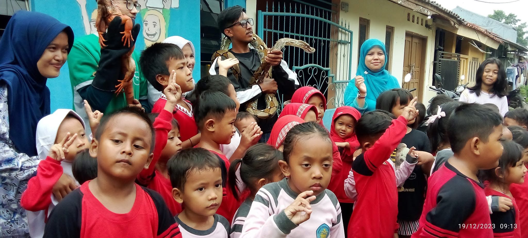 sekolah mengadakan kegiatan pengenalan hewan sebagai bagian dari pembelajaran tematik. Dalam kegiatan ini, para siswa diperkenalkan dengan berbagai jenis hewan secara langsung, salah satunya adalah iguana. Petugas menjelaskan karakteristik, habitat, dan cara perawatan hewan tersebut sambil memperlihatkannya kepada siswa. Anak-anak tampak antusias dan berani untuk mendekat serta mengenal hewan secara lebih dekat. Kegiatan ini bertujuan untuk menumbuhkan rasa cinta terhadap makhluk hidup, memperluas pengetahuan, serta membangun keberanian dan rasa ingin tahu pada diri siswa.
