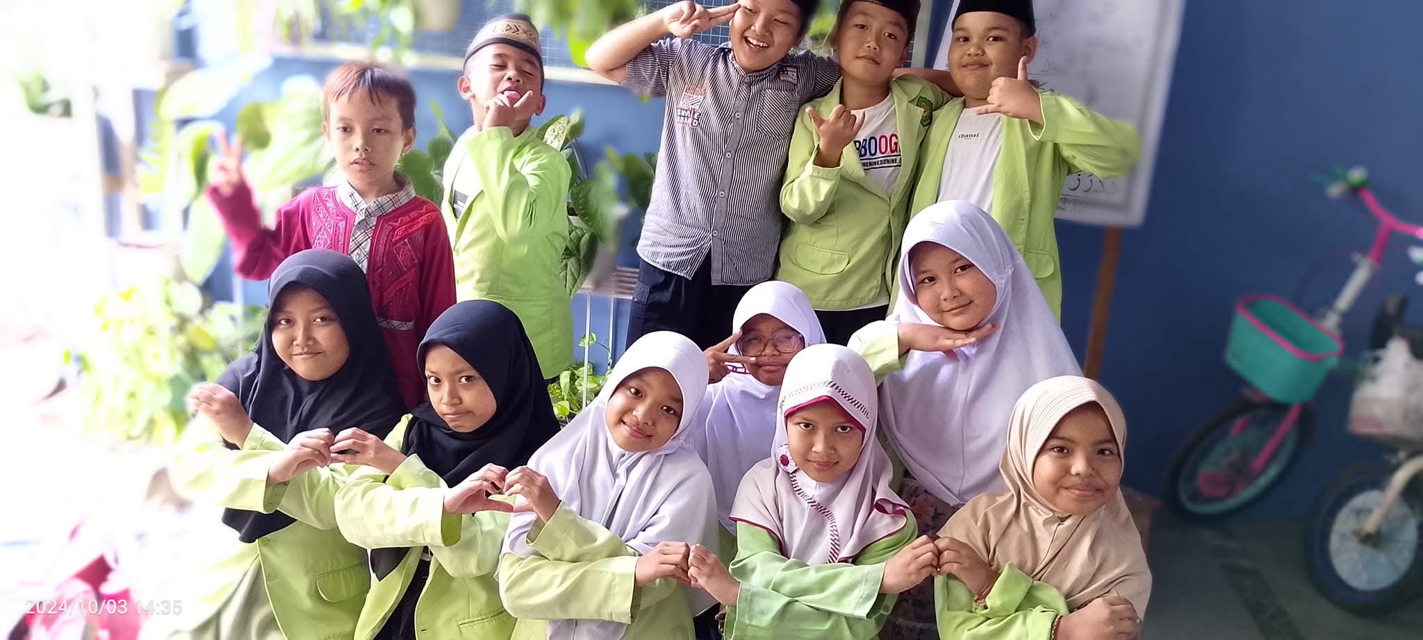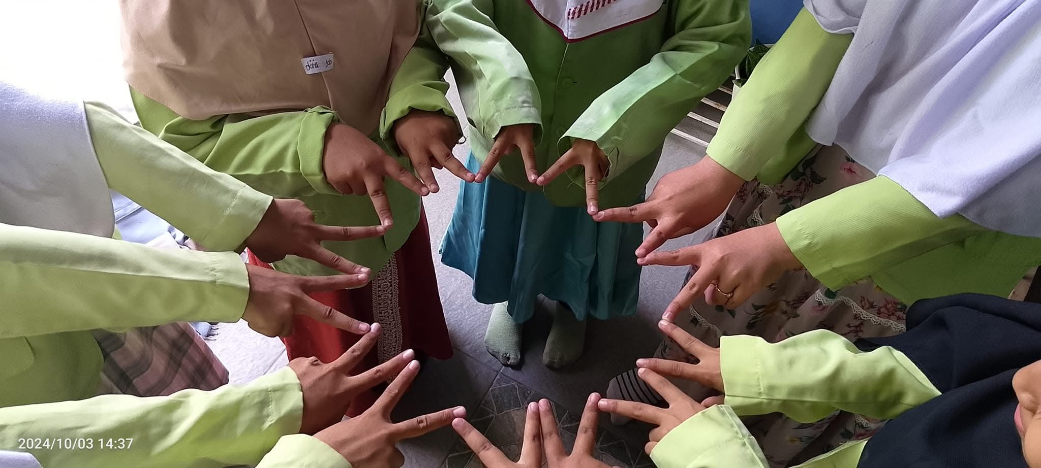 Foto ini diambil pada tanggal 3 Oktober 2024, menampilkan siswa-siswi putri yang ceria dan penuh semangat di lingkungan sekolah. Dengan mengenakan seragam rapi, mereka menunjukkan rasa kebersamaan, kekompakan, dan kebanggaan sebagai bagian dari sekolah. Momen ini menjadi potret kebahagiaan dan keceriaan yang mendukung suasana belajar yang menyenangkan.